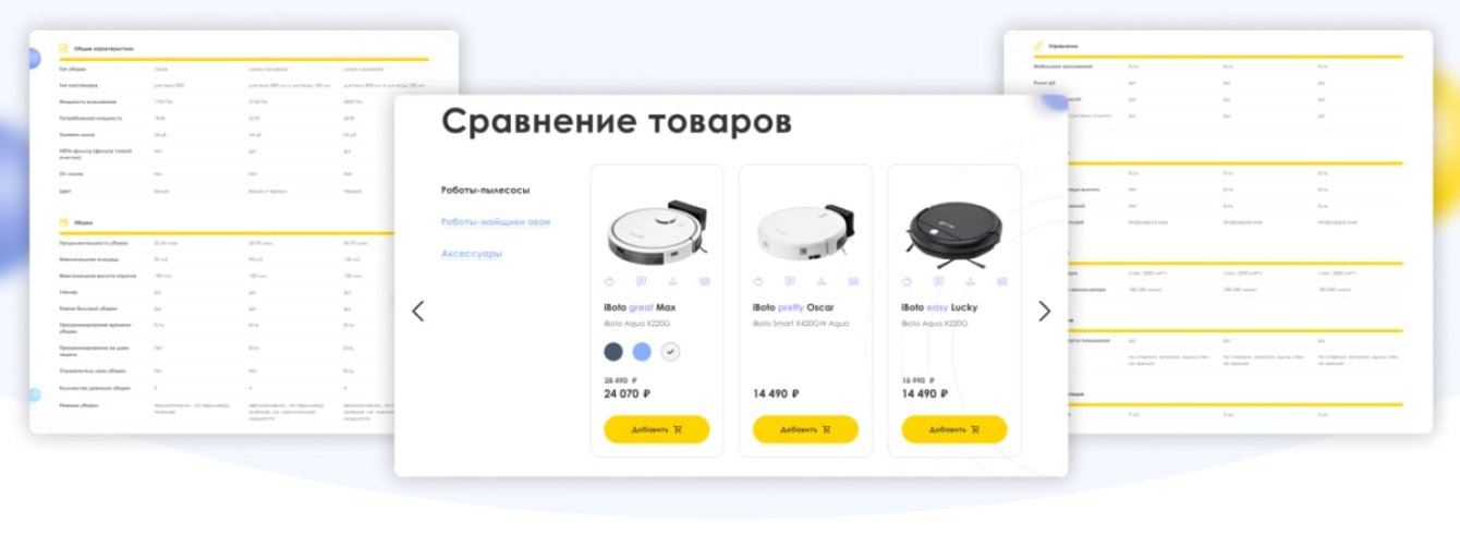 Если пользователь сомневается в выборе, он всегда может сравнить товары: на странице сравнения есть таблица со всеми важными параметрам