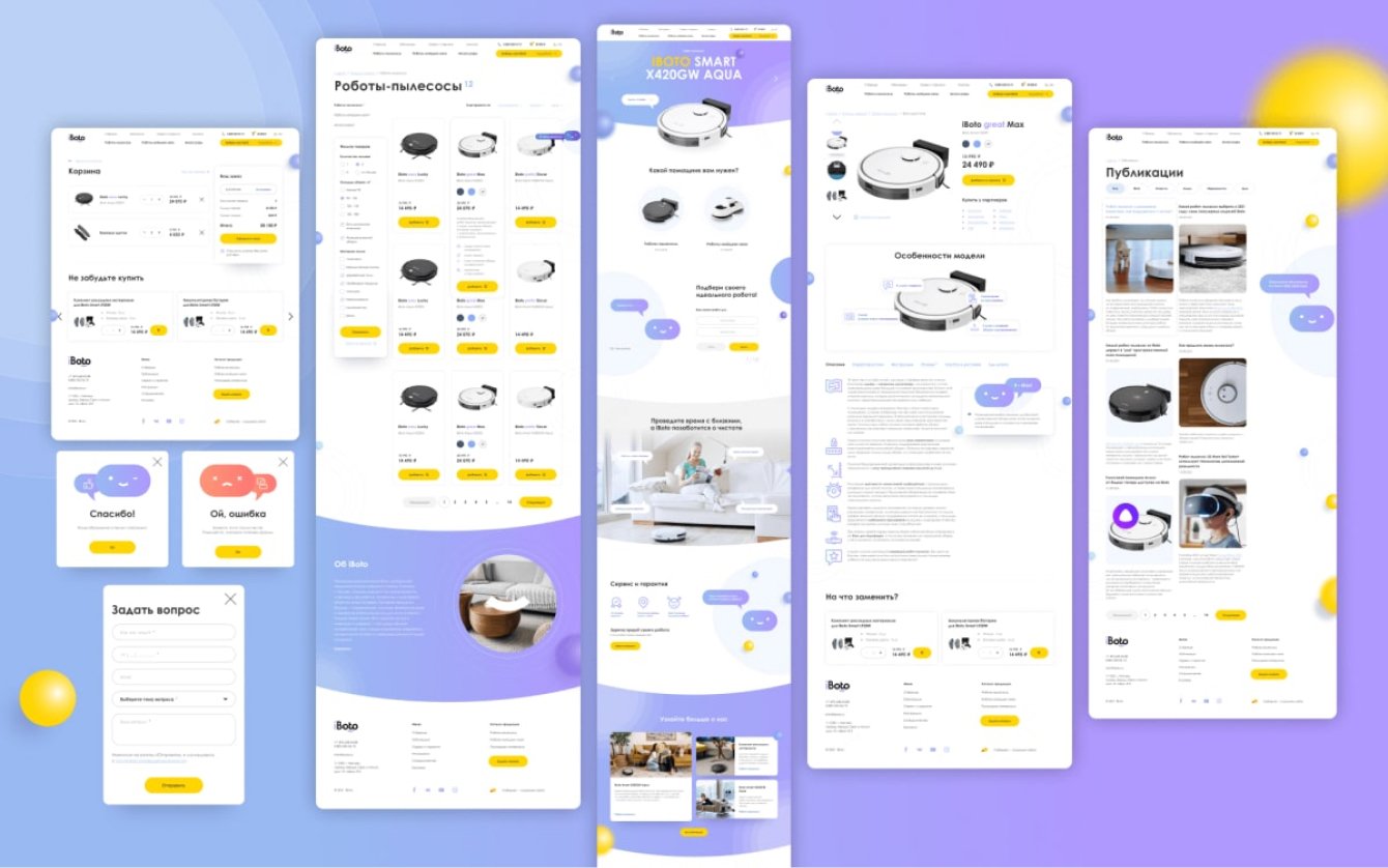Суть бренда — свобода времени: вместо унылой выматывающей генеральной уборки теперь можно заняться более приятными делами, пока робот iBoto всё сделает сам. Поэтому важно было создать ощущение уюта, комфорта и сделать акцент на эмоциях, а не на технологичности (с технологичностью и так всё в порядке).
