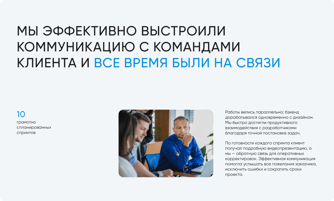 Благодаря тесной коммуникации с клиентом и его командой разработки за 2 месяца мы спроектировали удобный и логичный дизайн для многостраничной системы. Итоговая архитектура заняла 400+ страниц.