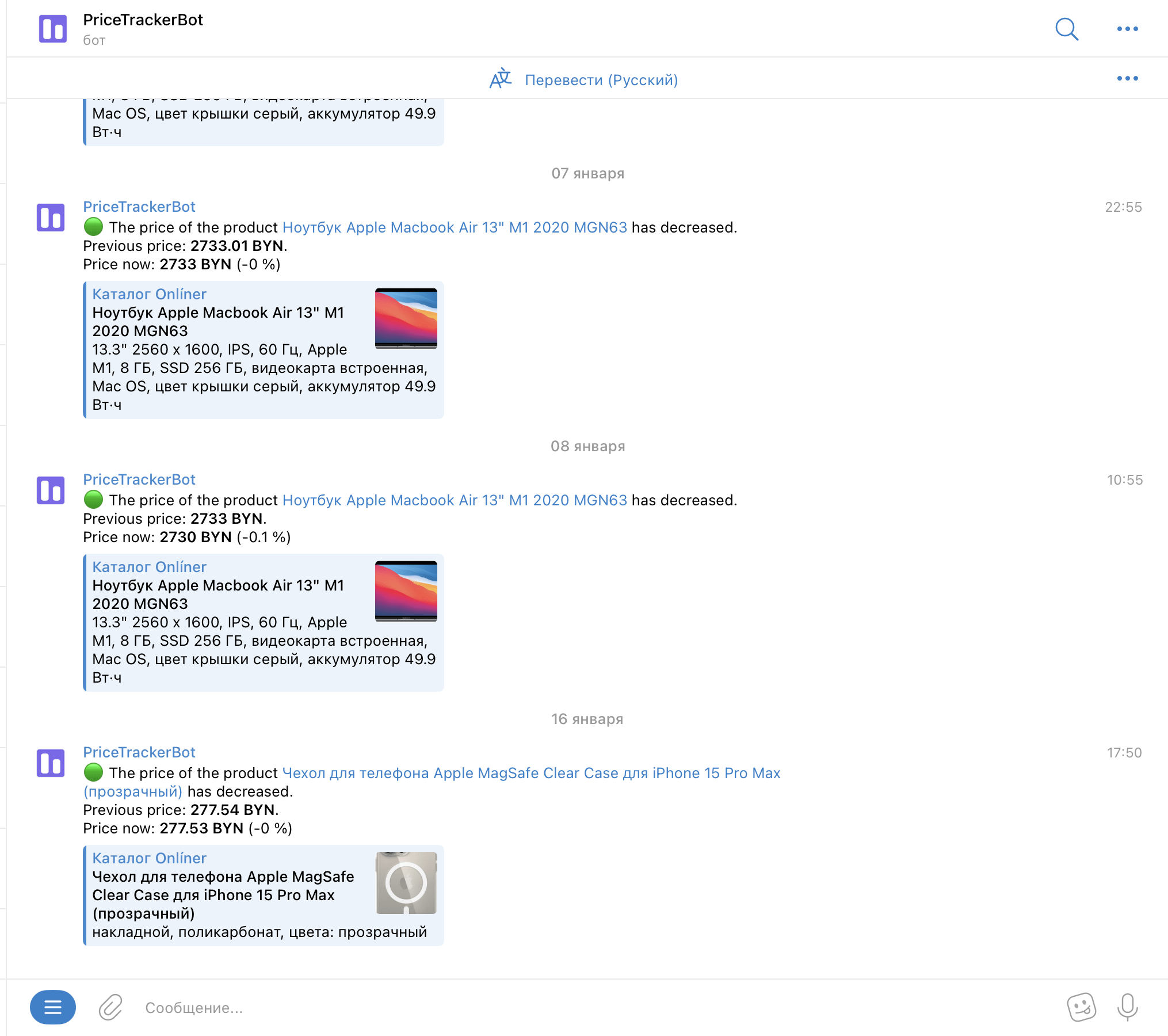 - Сервис опрашивает страницу товара и при изменении цены