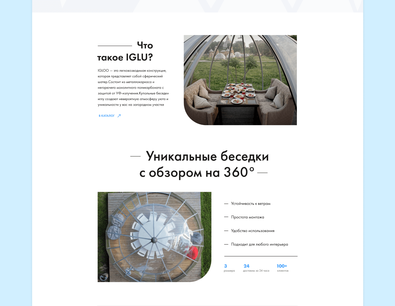 Клиент: Компания по изготовлению купольных беседок для бизнеса и дома