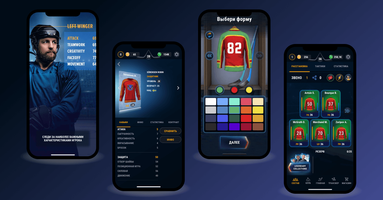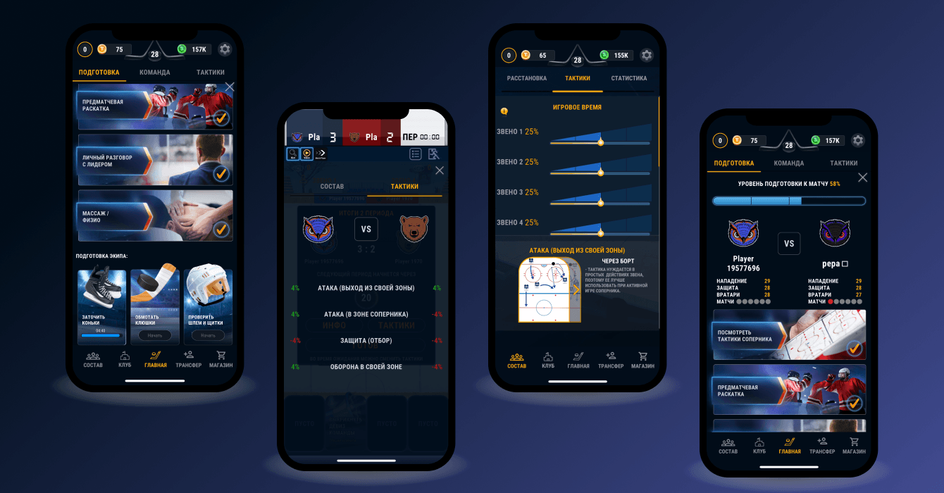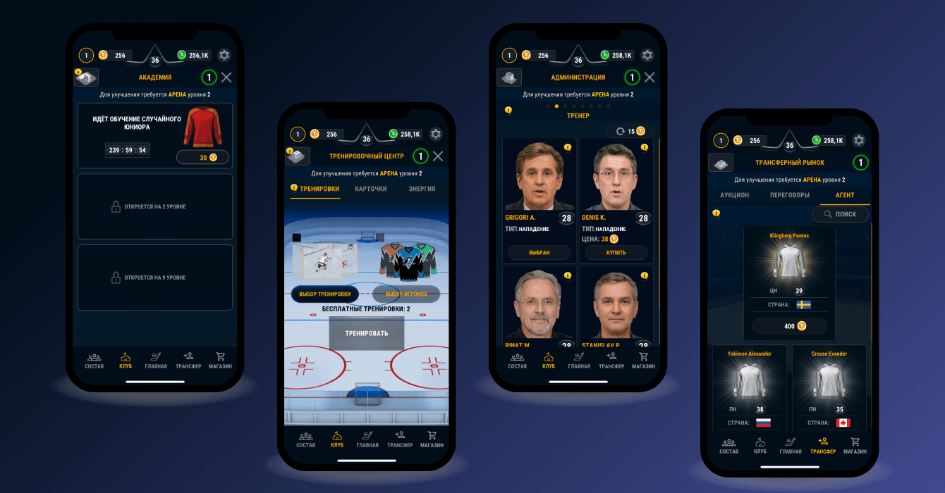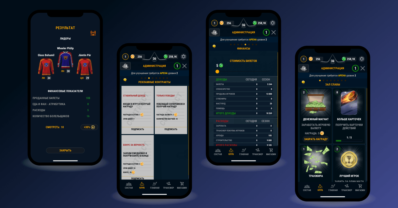 Мы разработали мобильную игру глобальной задачей которой становится продвижение хоккейного клуба в Лиге.