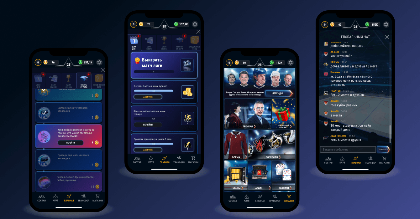 Мы разработали мобильную игру глобальной задачей которой становится продвижение хоккейного клуба в Лиге.