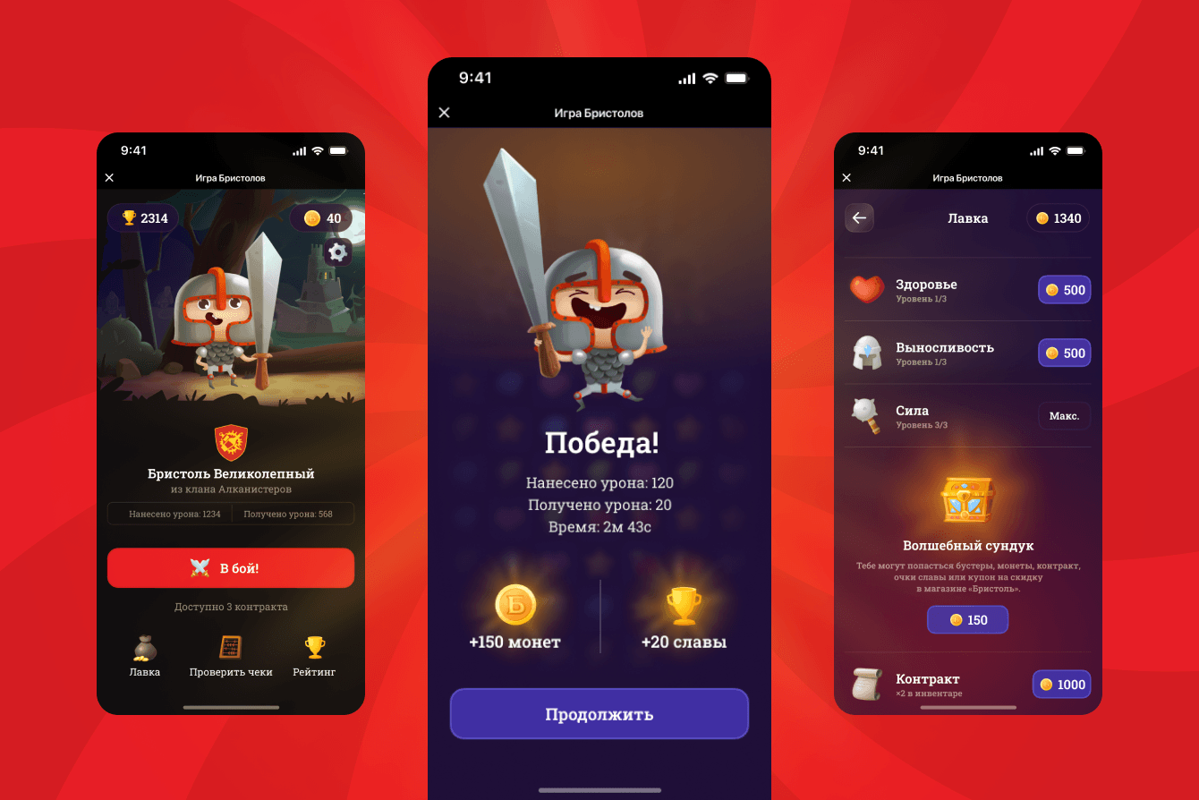 Кроме славы, в боях игрок получает монеты – внутриигровую валюту, которую можно тратить на покупки. Например, можно купить «Волшебный сундук» – контейнер, из которого могут выпасть бонусы, бустеры и купоны на скидку в сети «Бристоль».