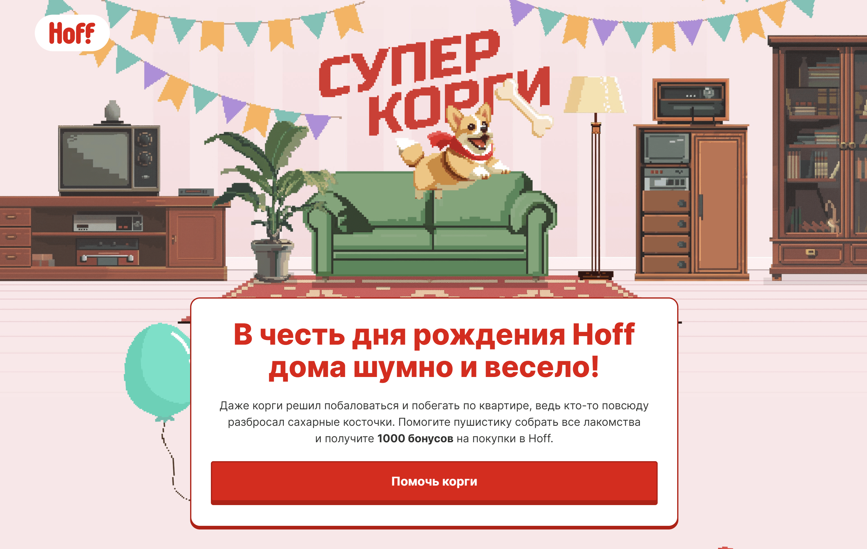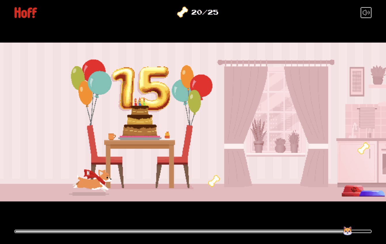 В честь 15-го дня рождения Hoff хотелось порадовать клиентов небанальной игрой, которая не только была бы визуально приятной, но и пробудила «детские» эмоции от старых игр на приставках Dendy, и в неё хотелось играть.