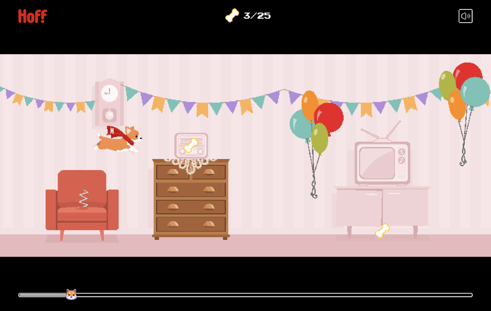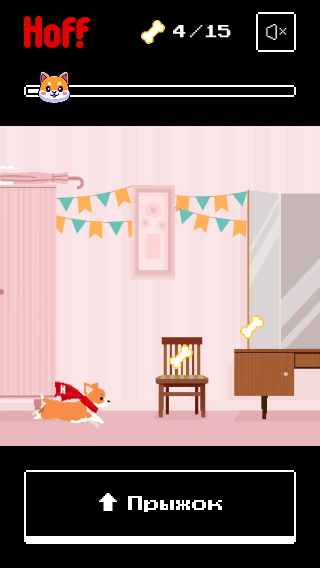 Персонажем стал корги — это маскот компании и по совместительству мемная порода, синоним милоты и веселья. Цель игрока — собрать сахарные косточки, перепрыгивая разложенные на полу предметы и забираясь на мебель.
