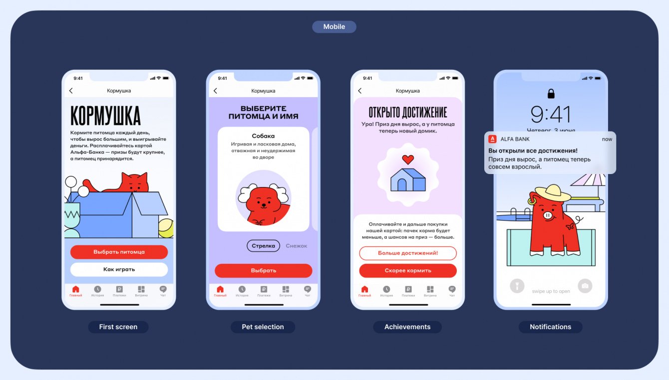 Мы даём людям возможность заработать на удовольствиях прямо в приложении Альфа-Банка дарим настоящие деньги, а не промокоды, бонусы или скидки у партнёров. «Кормушка» хорошо вписана в эту концепцию.