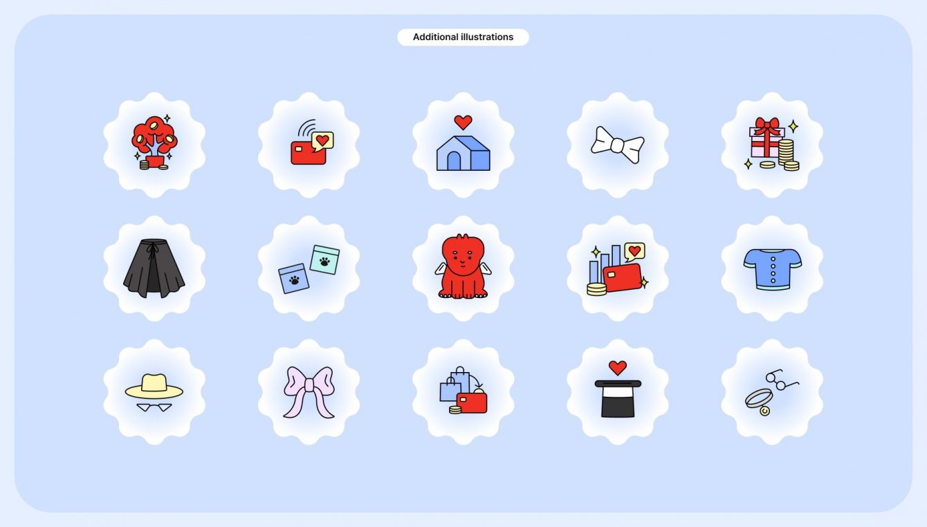 У нас получился синтез современной иллюстрации, образа домашнего животного и тамагочи. Для этого мы создали минималистичную основу, геометрические формы и детали-пасхалки, которые служат украшениями для базового вида питомца.