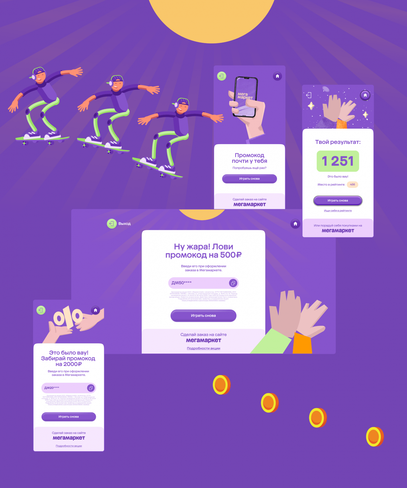 Успех игры решили повторить и на период летне-осенних фестивалей. Игрокам предлагается испытать весь спектр эмоций: от горения некоторых мест (бесячие бумеранги и вас заставят орать в стену) до эйфории от победы и возможности выиграть промокод на покупки в Мегамаркете. Чем больше монеток, тем выше номинал промокода ?