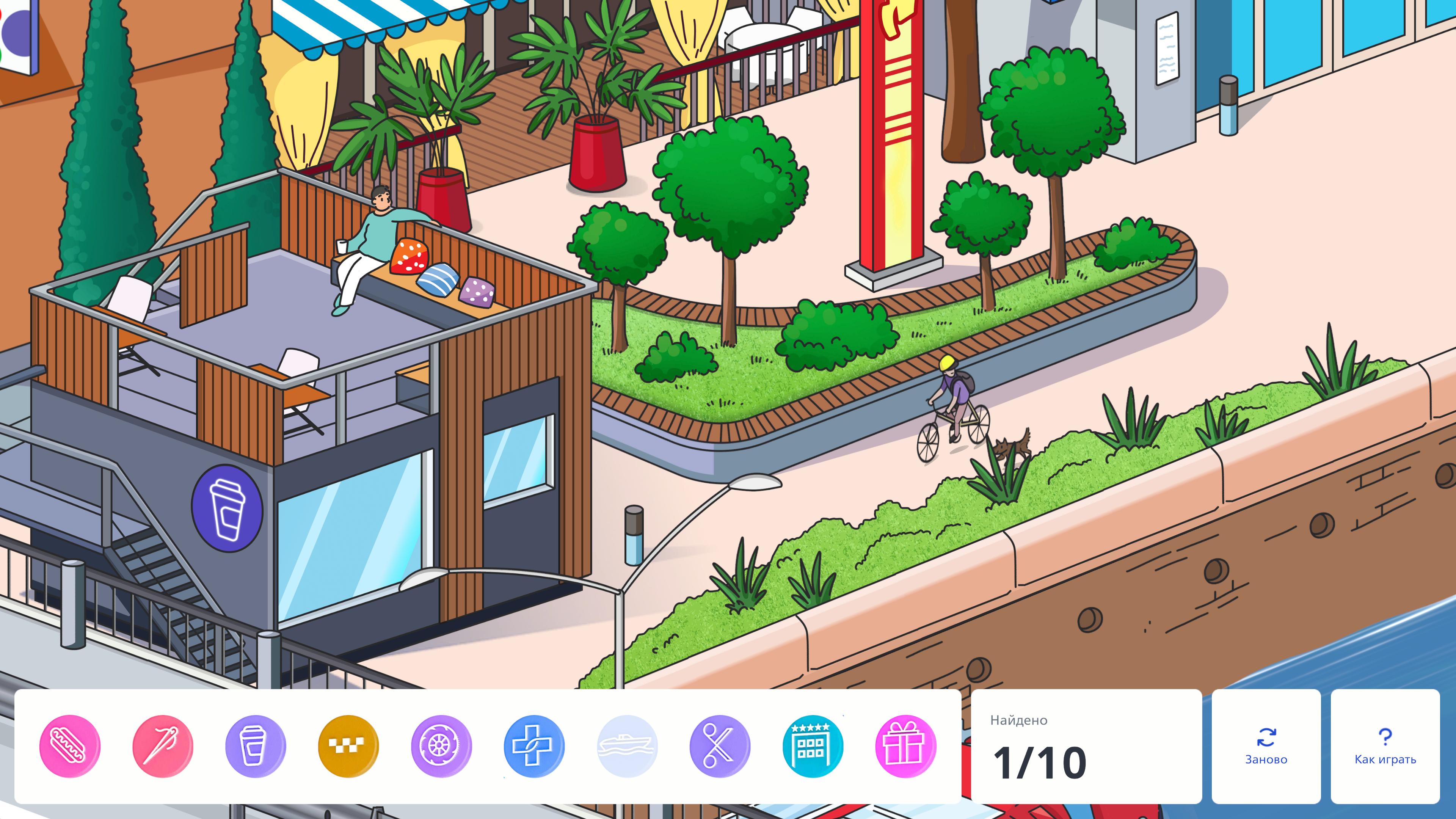 К нам обратилось агентство с задачей создать интерактивную игру для крупного банка ВТБ. Изначально у клиента уже была готовая арт‑картинка города в низком разрешении, использовавшаяся в печатных материалах и на постерах. Требовалось превратить её в игру по поиску предметов — так называемый Виммельбух, с анимацией и оживлённой городской жизнью.
