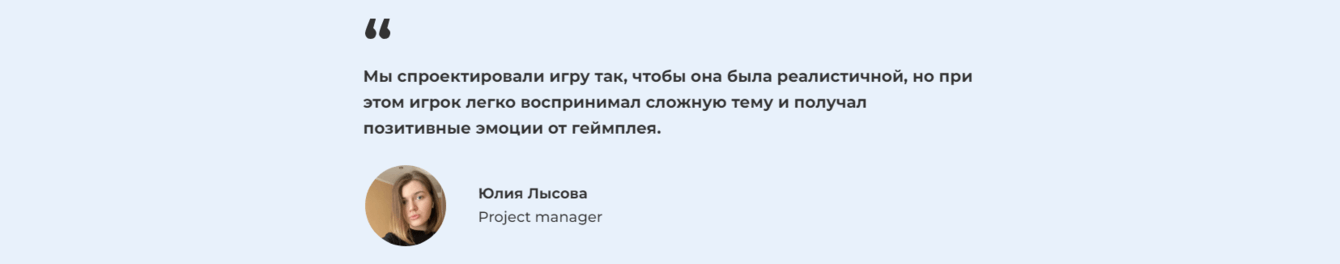 Мы отказались от масштабных упрощений, чтобы продукт мог принести максимальную пользу и качественную практику. Нам хотелось, чтобы при выходе на рынок ожидания пользователя, сформированные на основе игрового опыта, совпали с реальностью.