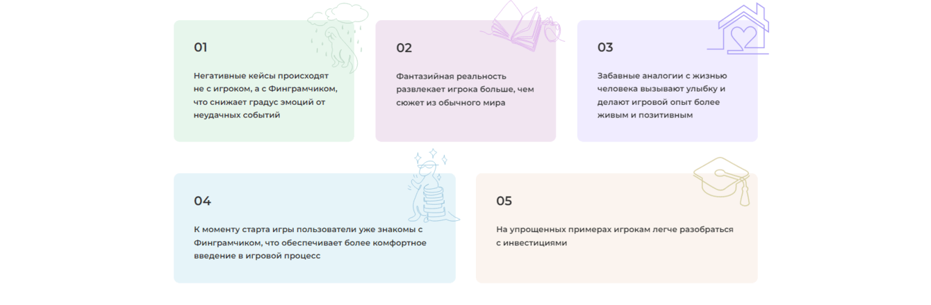 Кейсы и новости делают игру живой и динамичной, добавляя игроку больше интересных вызовов. А Финграмчик и ситуации, в которые он попадает, вызывают сопереживание и желание достичь всех финансовых целей персонажа.