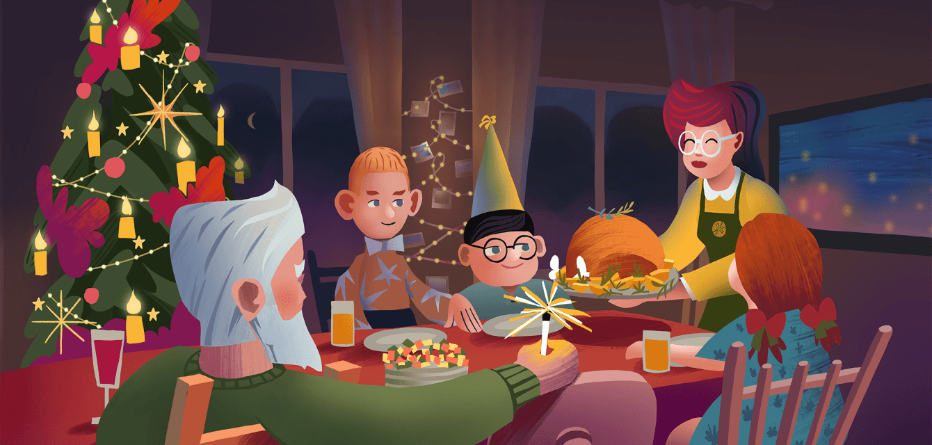 С точки зрения идеи, мы тоже ориентировались на что-то объединяющее для всех сегментов аудитории и выбрали традиционное, светлое и теплое представление о празднике, близкое к детским воспоминаниям. Весь сюжет игры был построен вокруг новогоднего стола — его мы видим на обложке «Новогодней гонки», на нем же происходят основные игровые действия. Это также хорошо соотносилось с ДНК бренда Selgros, в котором заключена любовь к еде и гастрономии.