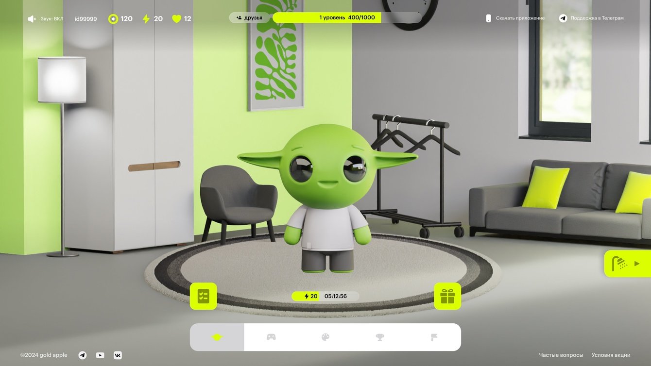 «Мир» Эльфа менялся под каждую. Мы с «Золотым Яблоком» подходили к акциям как к запуску новой игры: создавали новые визуалы, украшали комнату Эльфа и готовили ему новые наряды, чтобы максимально погрузить игроков в атмосферу.