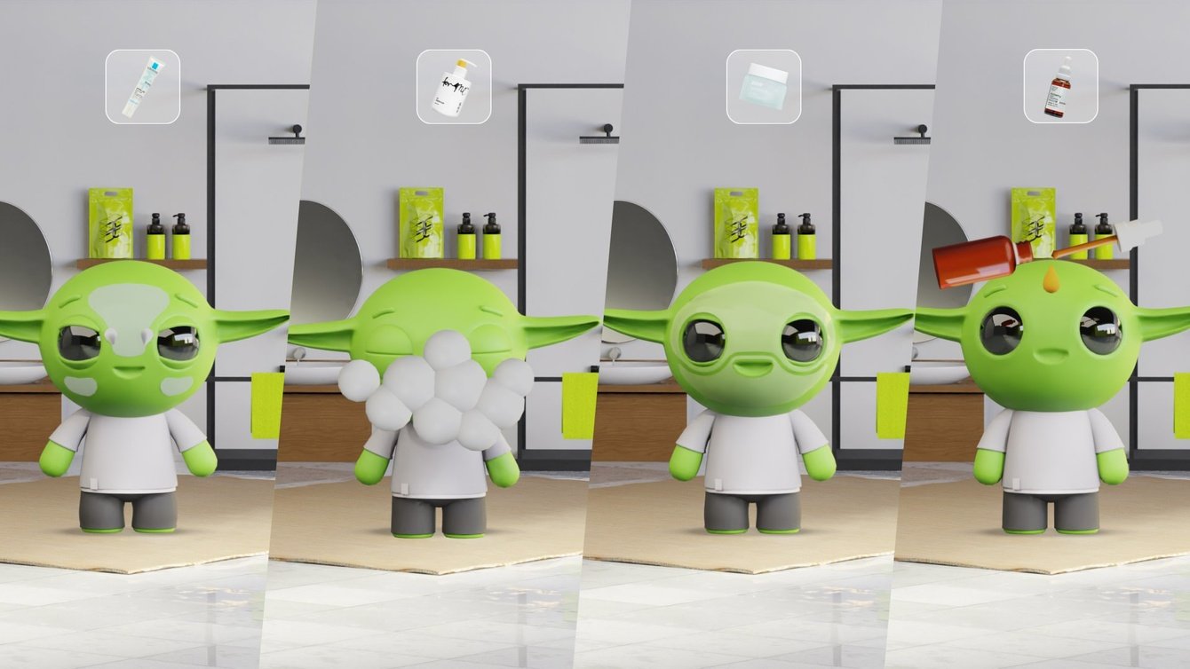 Для этого надо перейти во вторую локацию — ванную комнату, любимое место Эльфа. Там можно почистить зубы, нанести крем или патчи, сделать маску. Каждая бьюти-рутина продвигает товары из «Золотого яблока» — в действии участвует конкретный товар, а после процедуры игроку предлагается ознакомиться с ним в каталоге или продолжить игру.