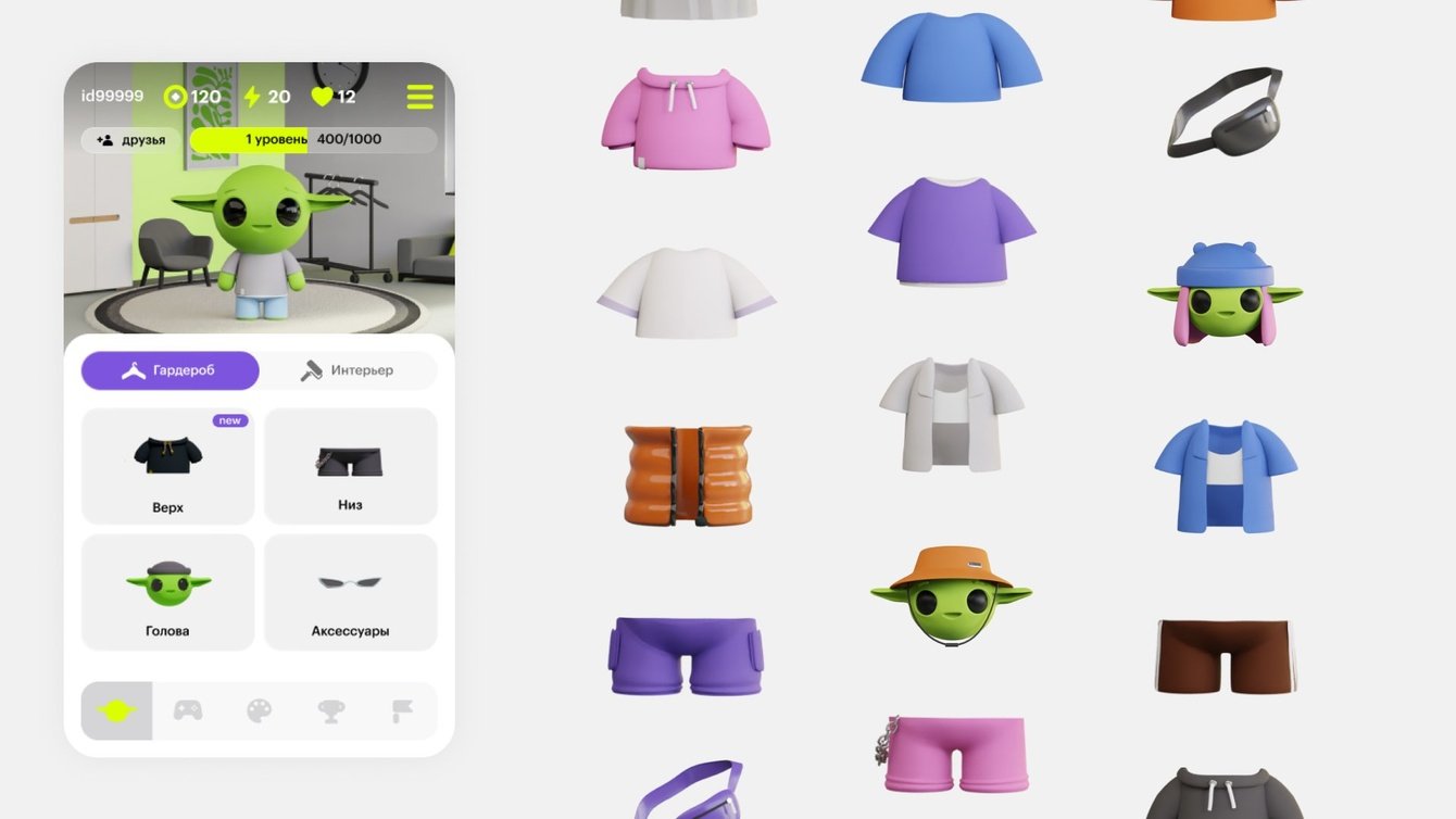 Параллельно с разработкой интерфейсов были созданы айтемы для кастомизации персонажа и интерьера комнаты Эльфа. За весь период игры отрисованы почти 700 единиц визуального контента: одежды, аксессуаров, предметов интерьера и прочих украшений персонажа и его окружения.