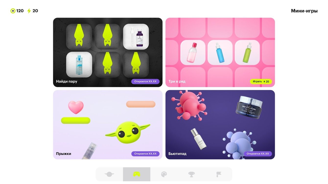 В игре три грейда: Бьюти-любитель, Бьюти-фанат и Бьюти-эксперт. Прогресс можно отслеживать в специальном разделе — он тизерит награды, которые пользователь получит, продвигаясь по игре. На одних уровнях это внутриигровые ресурсы, на других — промокоды в «Золотое яблоко».
