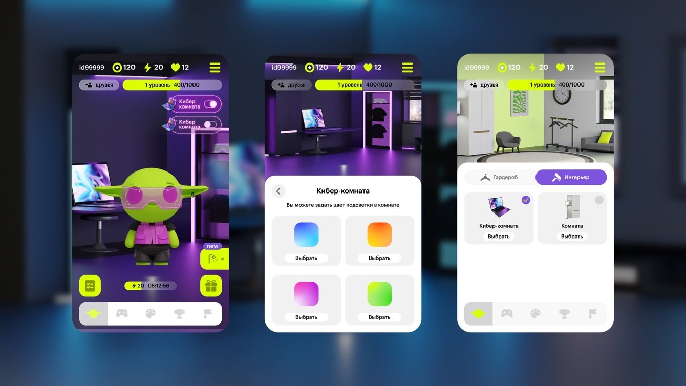 Параллельно с разработкой интерфейсов были созданы айтемы для кастомизации персонажа и интерьера комнаты Эльфа. За весь период игры отрисованы почти 700 единиц визуального контента: одежды, аксессуаров, предметов интерьера и прочих украшений персонажа и его окружения.