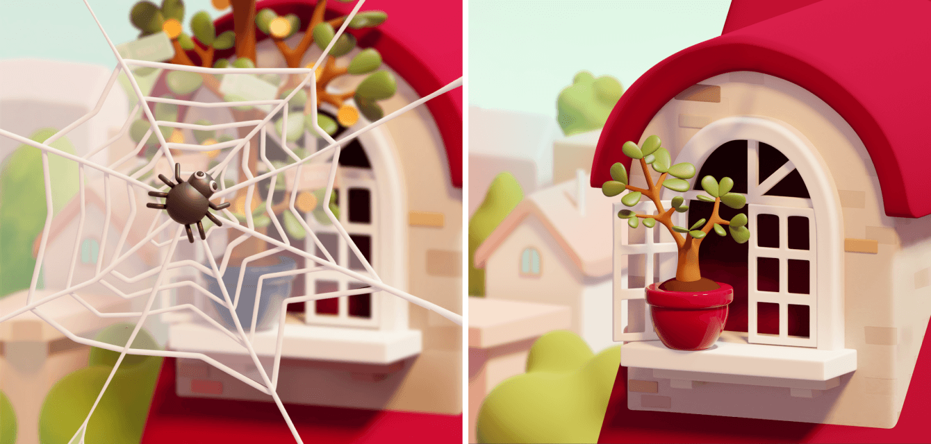 Мы создали пространство, пронизанное магией, безопасностью и детской наивностью — ведь весь сюжет немного напоминает сказку. Волшебные бобы, дерево, на котором растут монеты — с помощью дизайна мы объединили фантазию и игру. Все эти ощущения мы передали за счет мягких объемных форм, напоминающих структурой пластилин. За магию игры отвечает и динамика: в процессе роста дерева, фон на заднем плане меняется, становясь все более нереальным. Всего фонов-локаций в игре четыре: земля, облака, космос и дальняя галактика.