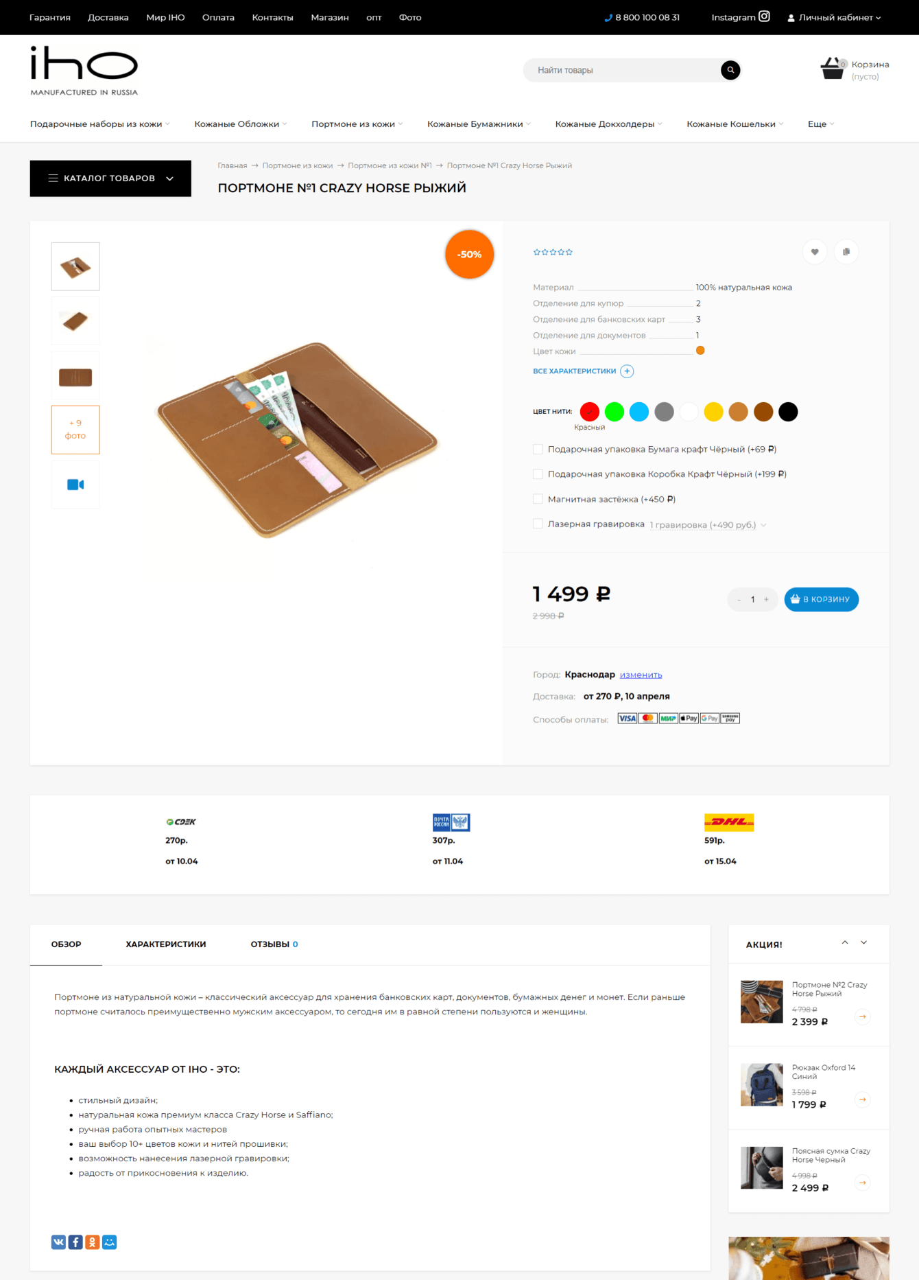 Клиент: IHO — это один из успешных российских брендов, специализирующихся на производстве высококачественных аксессуаров из натуральной кожи.