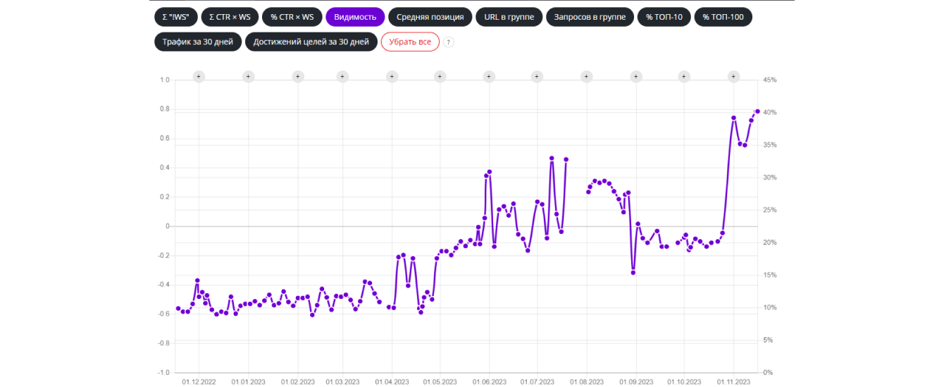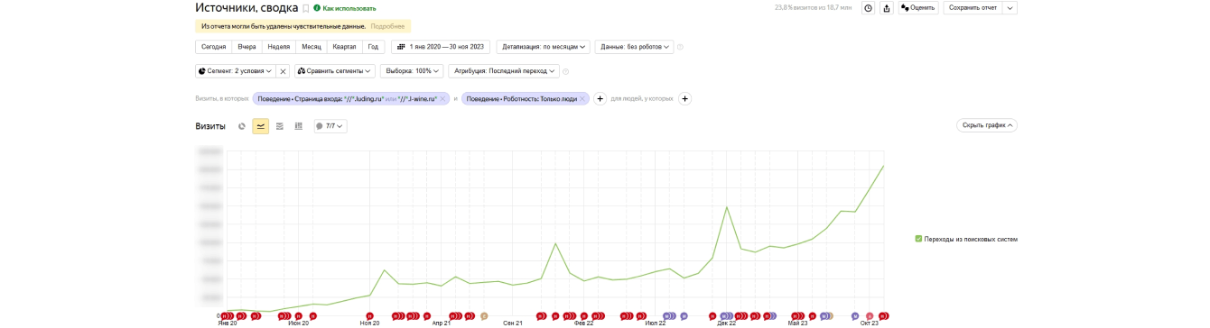 В период с ноября 2017 года по декабрь 2022 года трафик из поисковых систем вырос на 26 494% без брендовых запросов (примерно в 265 раз). Прирост составил 5300% за каждый год работ.