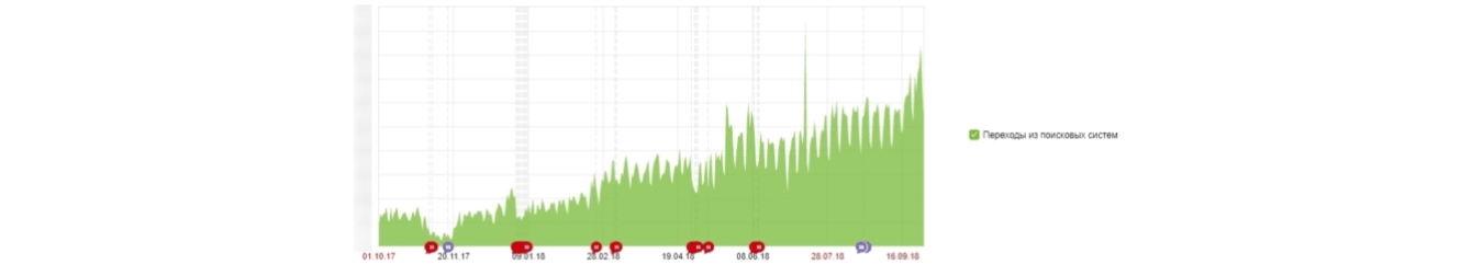 В итоге мы смогли завоевать доверие заказчика, и в марте 2018 года он предоставил нам доступ к админ-панели. Работа наладилась. Показатели сначала выровнялись, а потом уверенно пошли вверх.