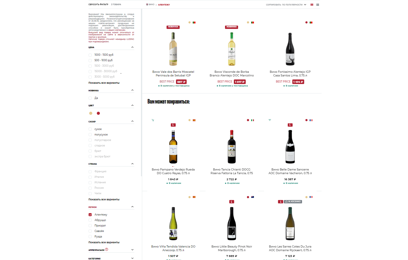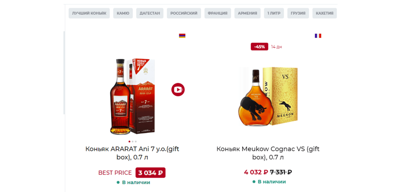Например, сначала в фильтре не было параметра «бренд», был только «производитель». Но мы заметили, что в алкогольной тематике спрос по брендам часто превышает спрос по производителям.