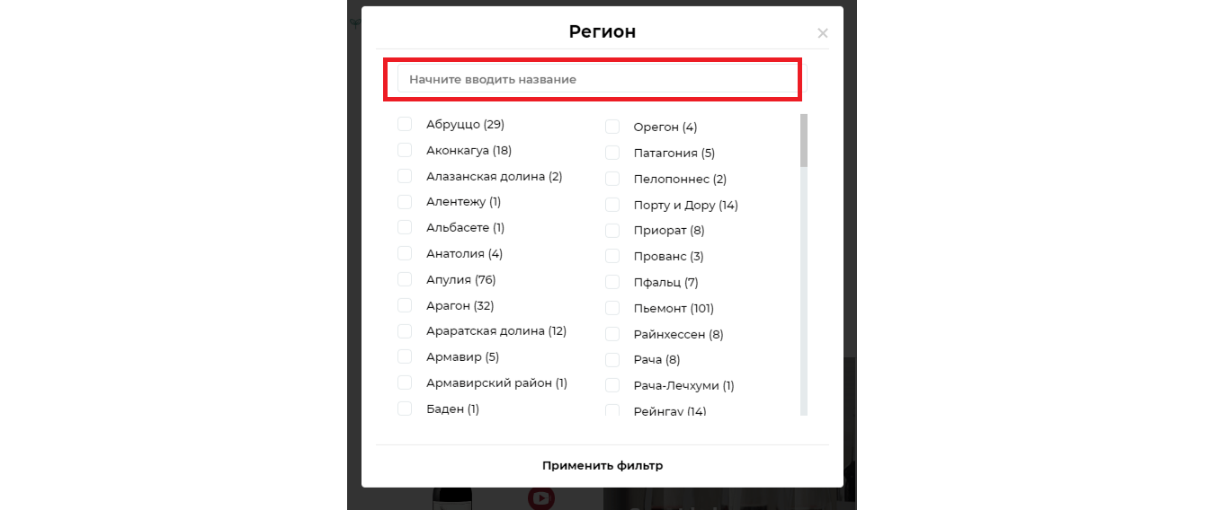 ➡️ Чтобы было проще ориентироваться в блоках фильтрации, добавили строку поиска, а также указали количество результатов фильтрации для каждого значения.