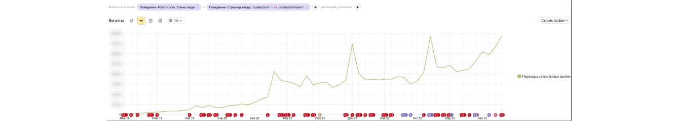 Наглядная динамика роста поискового трафика по страницам каталога, который генерируются через функционал «умного» SEO-фильтра.