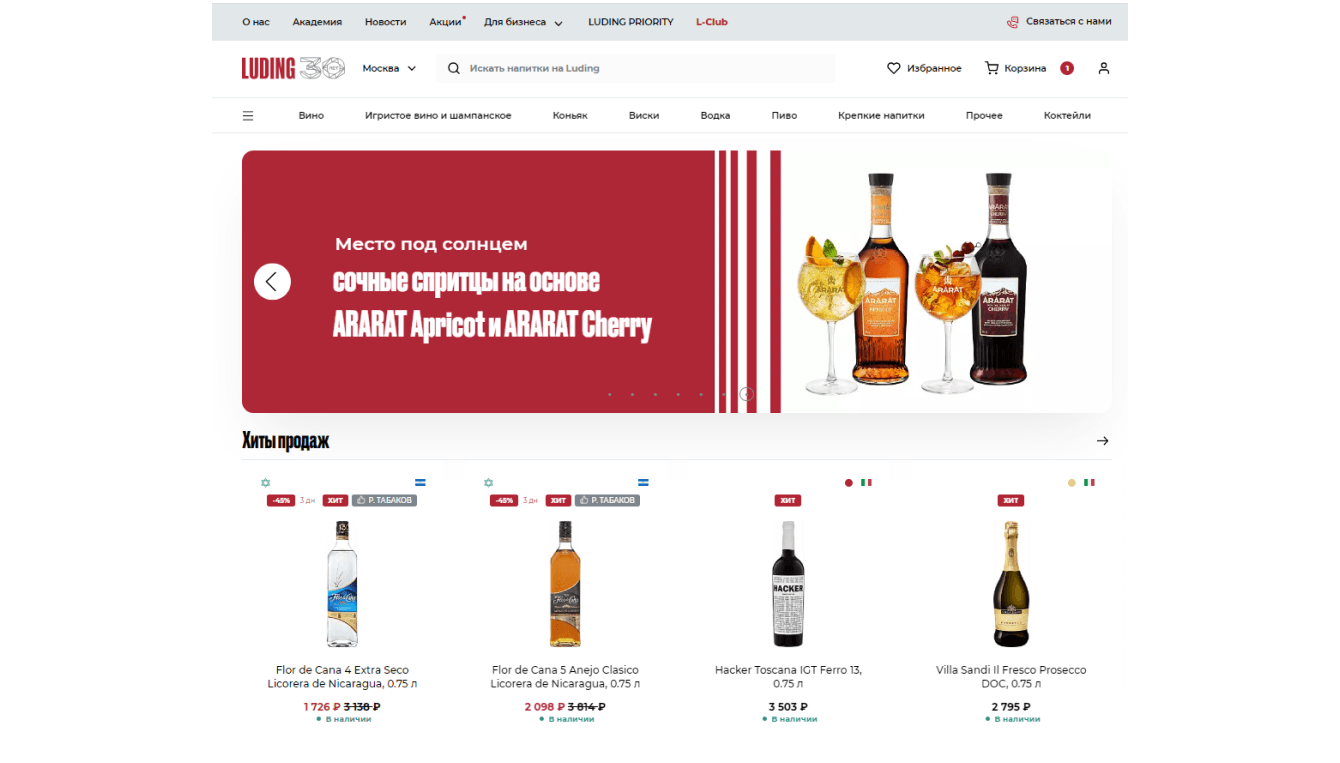 Проект LUDING — интернет-витрина, где можно выбрать алкогольный напиток, сделать заказ и выкупить его у дистрибьюторов в офлайн-магазине.
