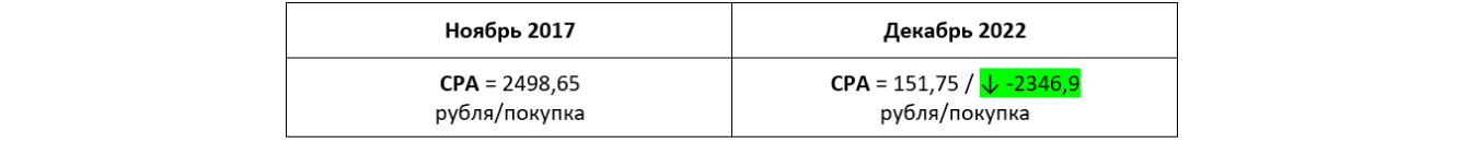 Стоимость покупки сократилась на 94%. При этом средний чек покупки составляет ≈ 6 400 руб., а ROI = 4393%.