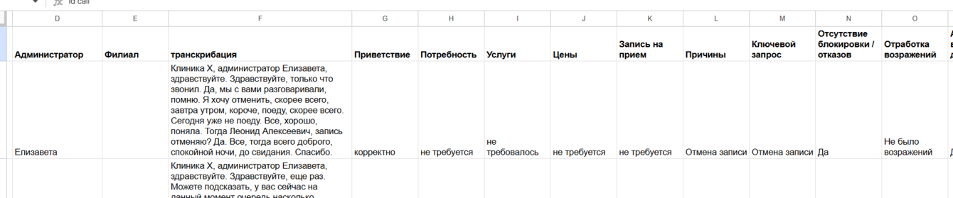 Подключили транскрибацию и оценку звонков по чек-листу (приветствие, выявление потребности, услуги/цены, работа с возражениями, активное ведение диалога, завершение, тон, итоговая оценка), отдельно собрали причины “не записались” и карту ключевых запросов.