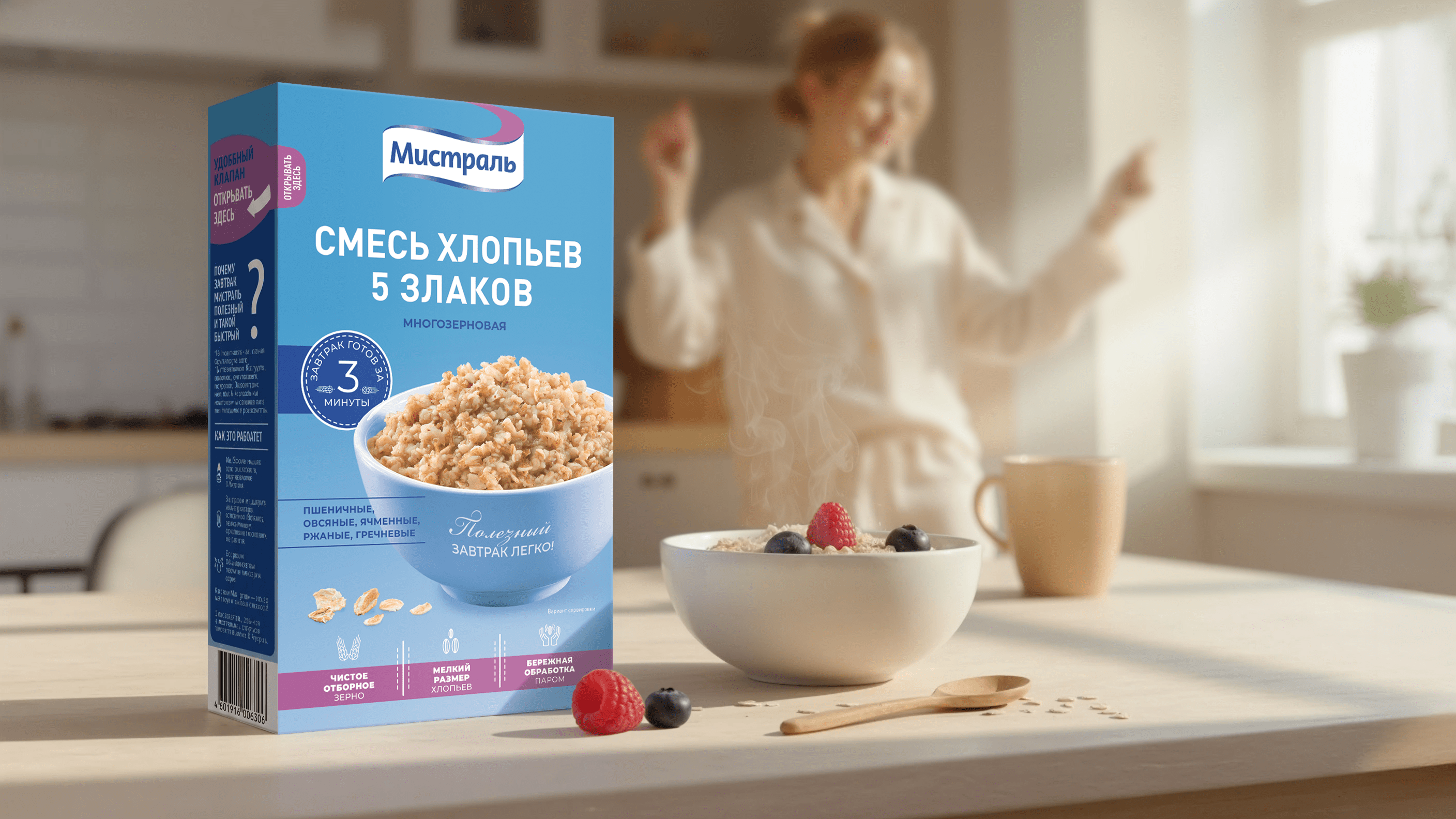 В 2025 году «Мистраль» решила перезапустить линейку хлопьев «Пять злаков» с упором на современный образ продукта. Перед командой стояли следующие цели: