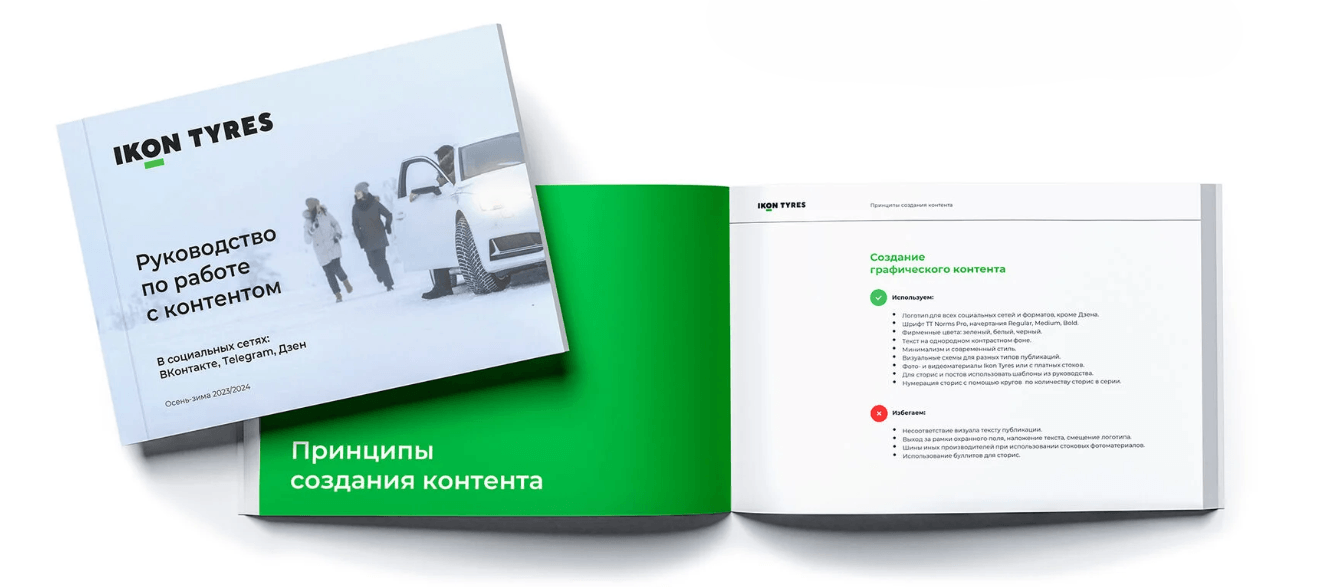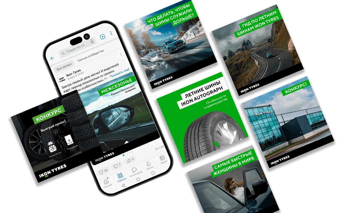 Основные константы фирменного стиля Ikon Tyres определили общий стиль оформления социальных сетей бренда.