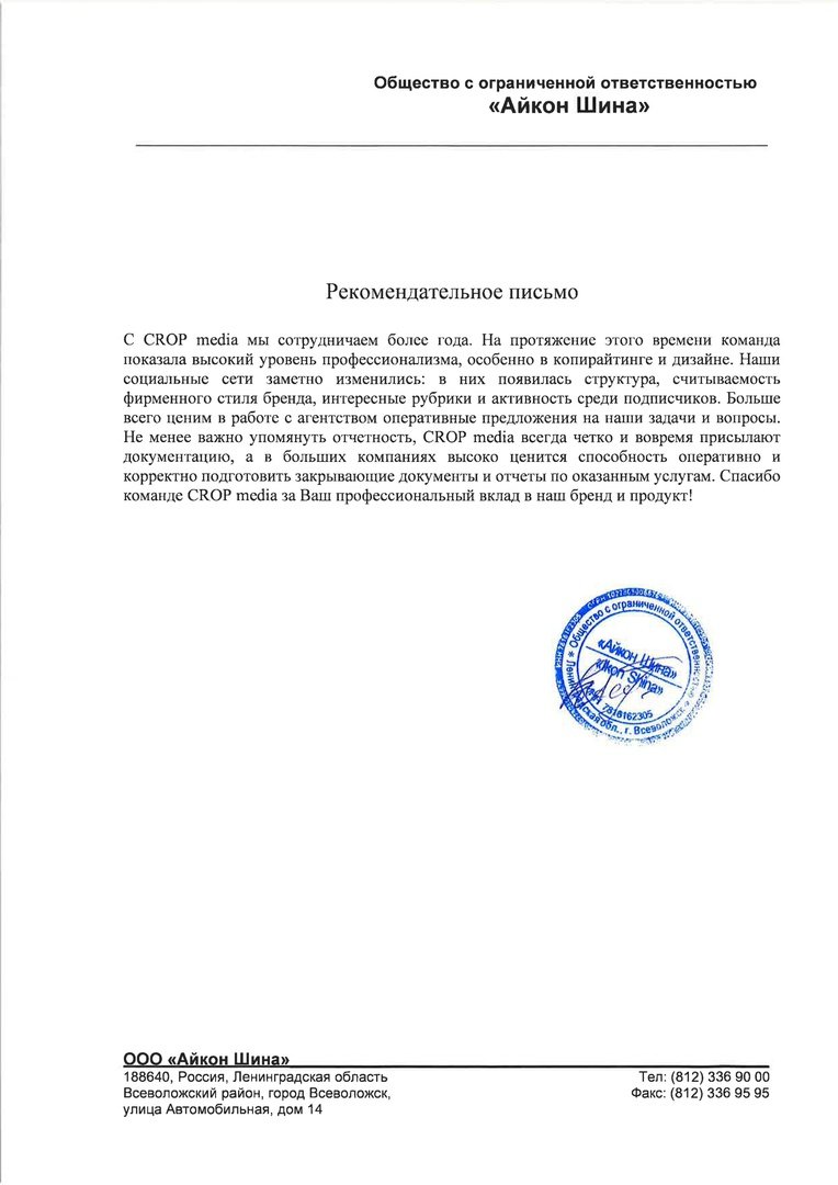 Больше всего ценим в работе с агентством оперативные предложения на наши задачи и вопросы. Не менее важно упомянуть отчетность, CROP media всегда четко и вовремя присылают документацию, а в больших компаниях высоко ценится способность оперативно и корректно подготовить закрывающие документы и отчеты по оказанным услугам. Спасибо команде CROP media за Ваш профессиональный вклад в наш бренд и продукт!![]()
