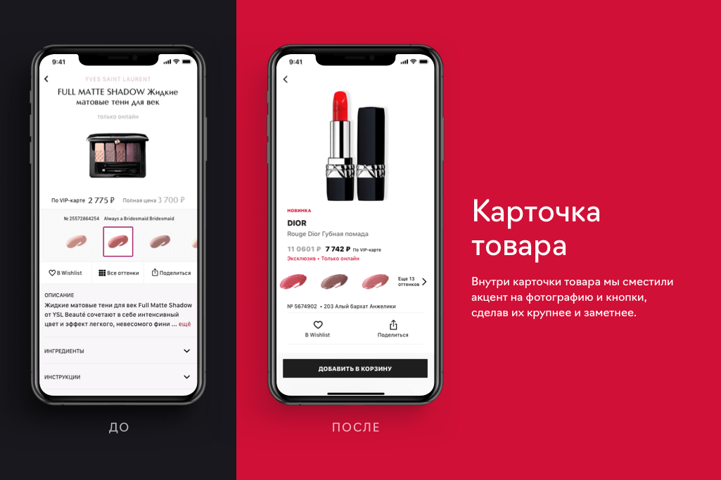 — сделали акцент на контенте: фотографии товара и кнопки стали крупнее.