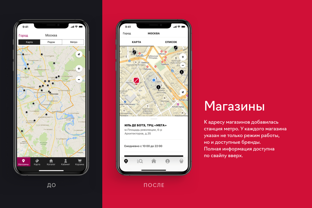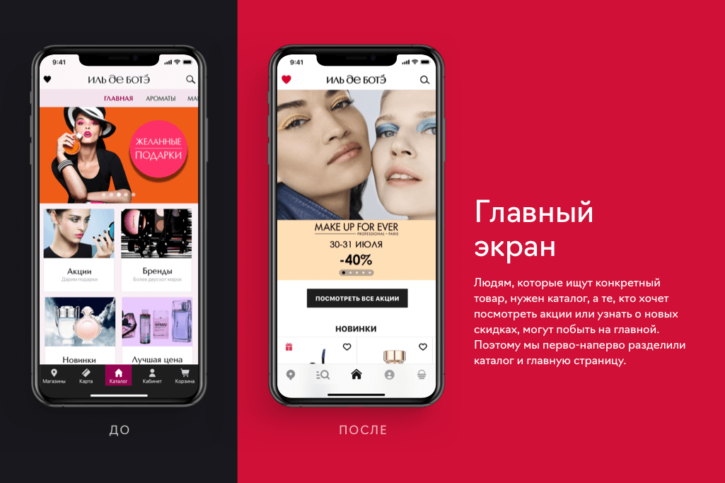 Если нет, то продукт неэффективен для бизнеса. Поэтому важно поддерживать приложение и вовремя замечать, что изменения нужны. Так было и с «Иль де Ботэ». На рынке начали появляться новые игроки, они экспериментировали, пробовали что-то необычное, и на их фоне наш сервис мог сдать позиции. Чтобы этого не допустить, в редизайне мы: