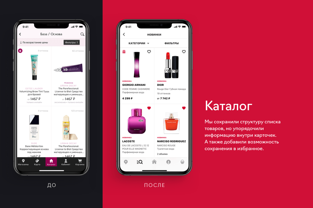 Проект был нашим дебютом в бьюти-индустрии. И этот опыт был новым не только для нас — мы делали первый мобильный магазин косметики и духов на российском рынке. Перед мобильным приложением стояли три основные цели: