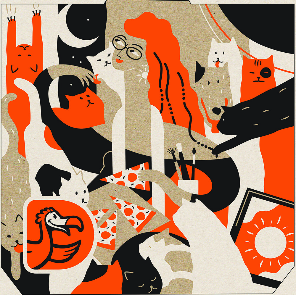 В результате четырех месяцев ежедневной работы нам удалось найти новый неповторимый и узнаваемый стиль. За это время мы создали сотни черно-белых и цветных зарисовок, десятки персонажей, десятки эмоциональных жизненных историй о пицце.