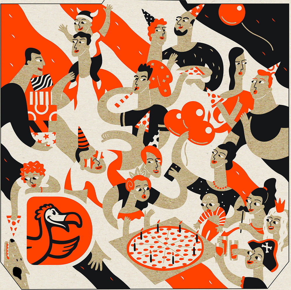 Второй год подряд мы работали над упаковкой для пиццы «Додо». В этот раз нашей задачей была разработка иллюстраций уже не только для 3 коробок пиццы, но и для другой упаковки бренда. Ключевые цели остались теми же - создать детализированные, цепляющие иллюстрации, которые покупателям захочется рассматривать.