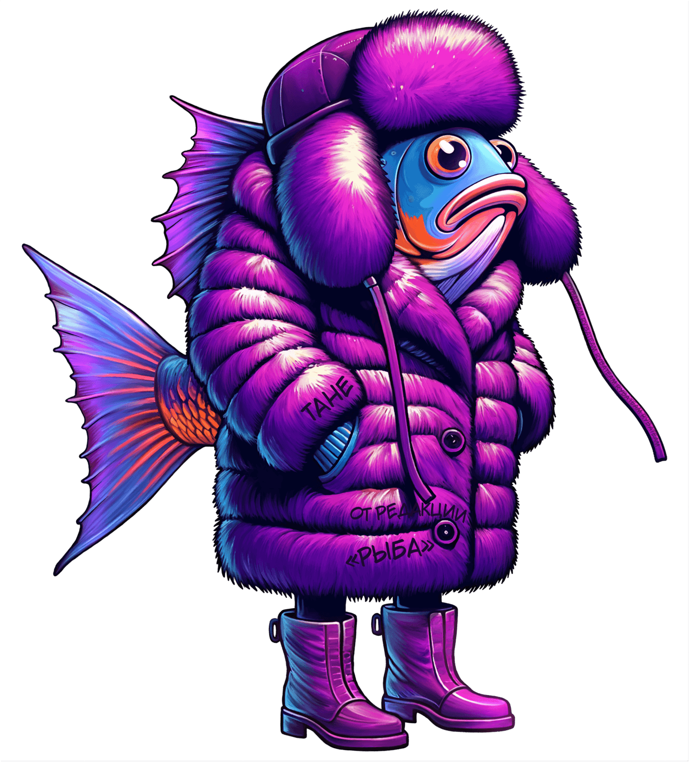 Под Новый год мне достался свитшот с рыбой, которая сидит в ванной с икрой. Идея принта — что-то невероятное! Мне кажется, таким и должен быть мерч у всех компаний, чтобы не стыдно было надеть в кафе или погулять в парке