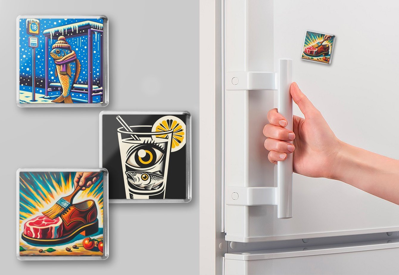 Например, для разработки новогодних принтов использовали такие ассоциации: икра, красная рыба, гирлянда, селедка под шубой, оливье, елка, шампанское.