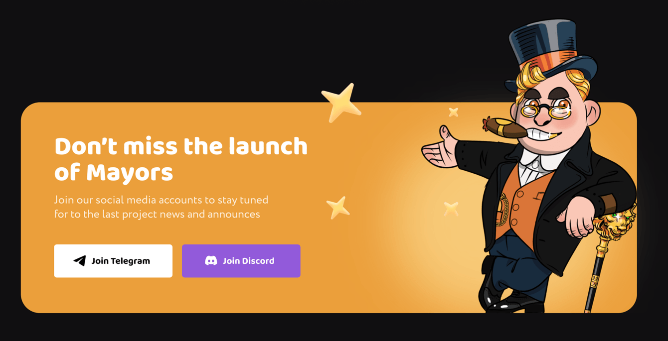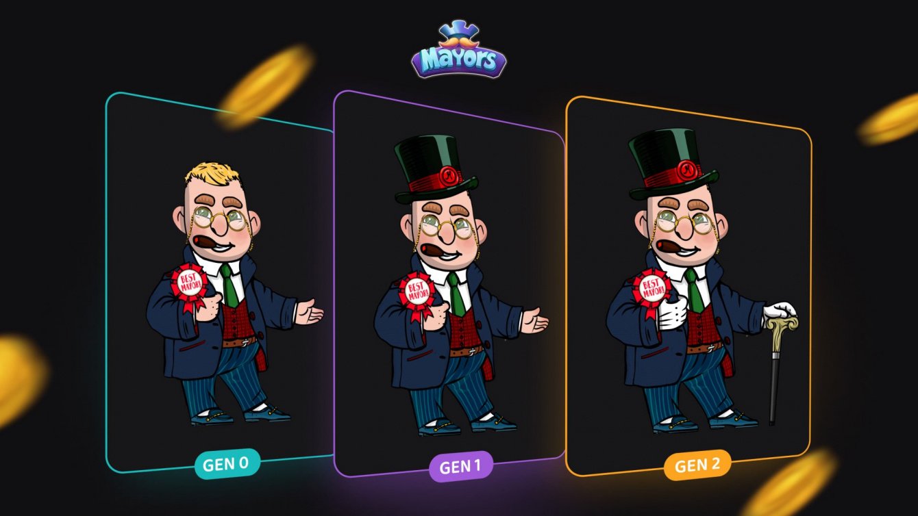 Mayors — это игра, основанная на технологии NFT. Игроки могут голосовать, баллотироваться на пост мэра разных городов и иметь пассивный пожизненный доход. Задачей на этом проекте стала разработка дизайнов персонажей и создание промо-материалов для соцсетей проекта.