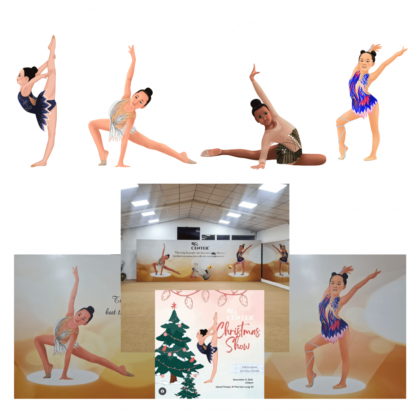 Нарисовать несколько гимнасток для использования на баннерах и в соцсетях