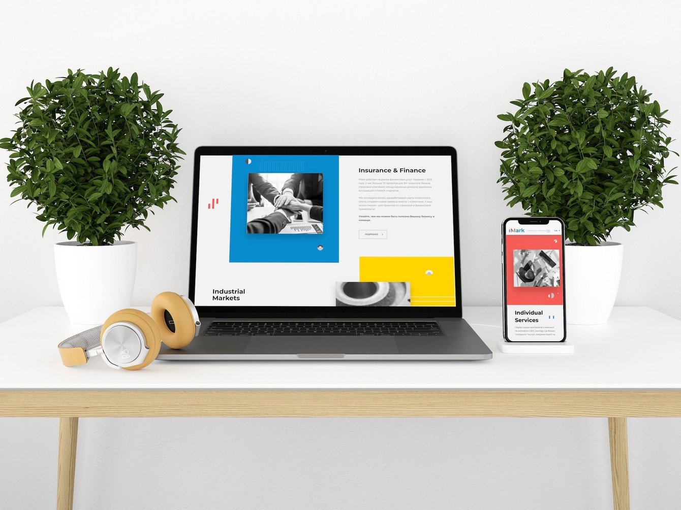 Разработка веб-сайта с современным дизайном для нашего партнера - профильного маркетингового агенства Imark, которое охватывает компании сфер индустриального производства, страхования, финансов, а также индивидуальных сервисов.