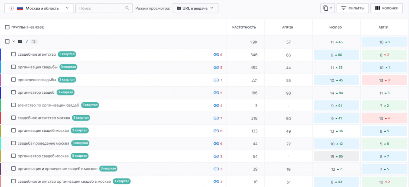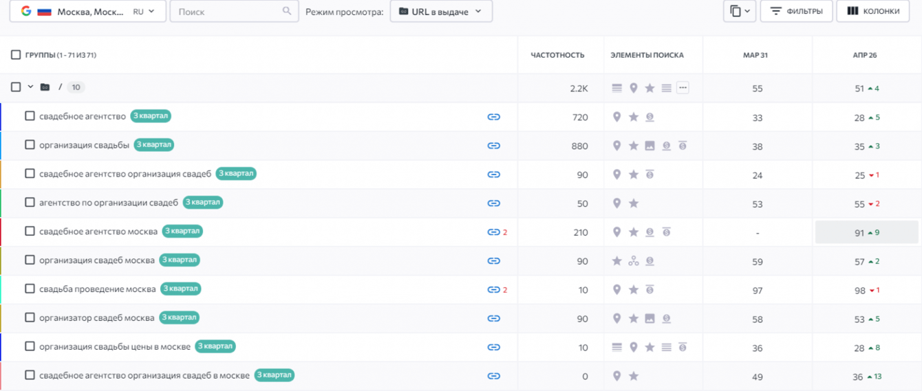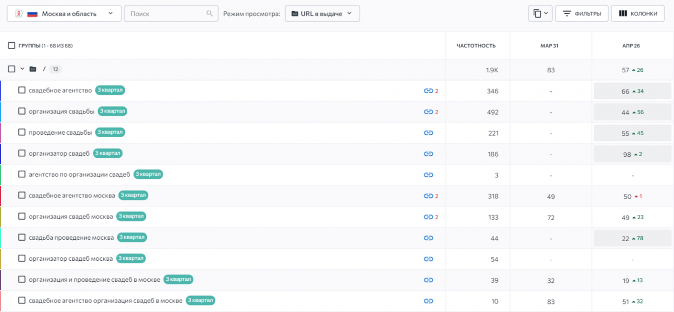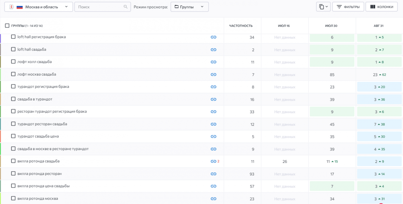 Проект iMarry пришел к нам в феврале, когда трафик на сайт уже был 2,5 тыс. Свою работу мы начали с составления стратегии продвижения под Москву, аудита сайта, анализа конкурентов и сбора семантического ядра.