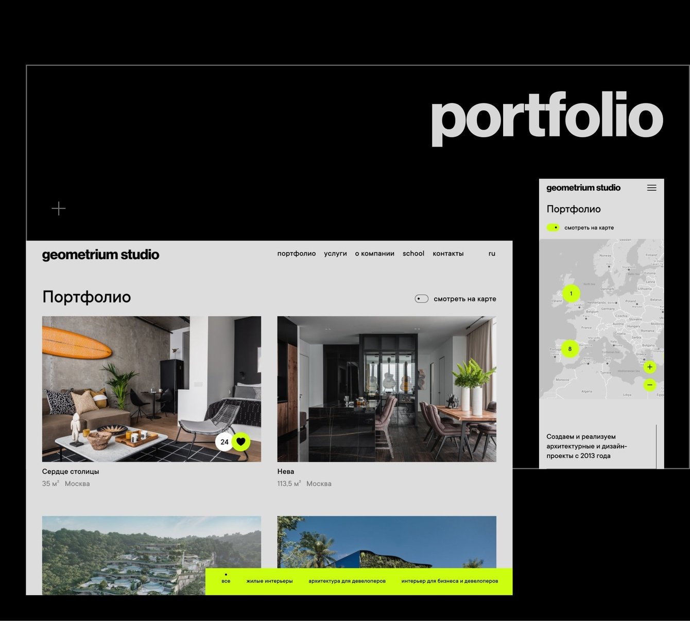 • Создали уникальный дизайн, соответствующий статусу дизайн-студии Geometrium как лидера в области интерьерных решений и архитектуры