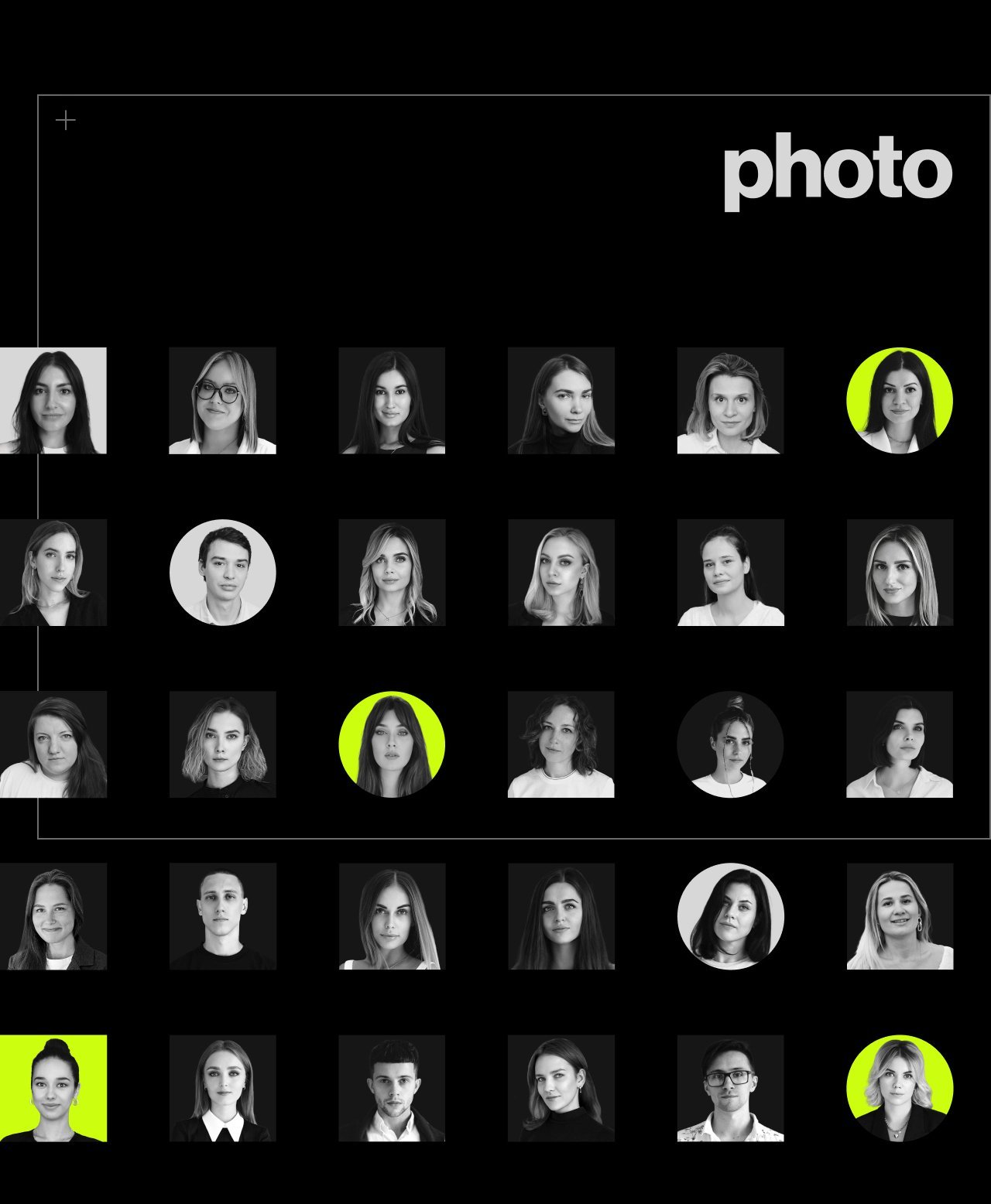 * В одном показали портреты специалистов команды. Их в команде 65, и чтобы показать всех, мы придумали фишку с кнопкой обновления — нажимая ее в рандомном порядке отображаются фото разных сотрудников, позволяя пользователю ознакомиться со всеми.