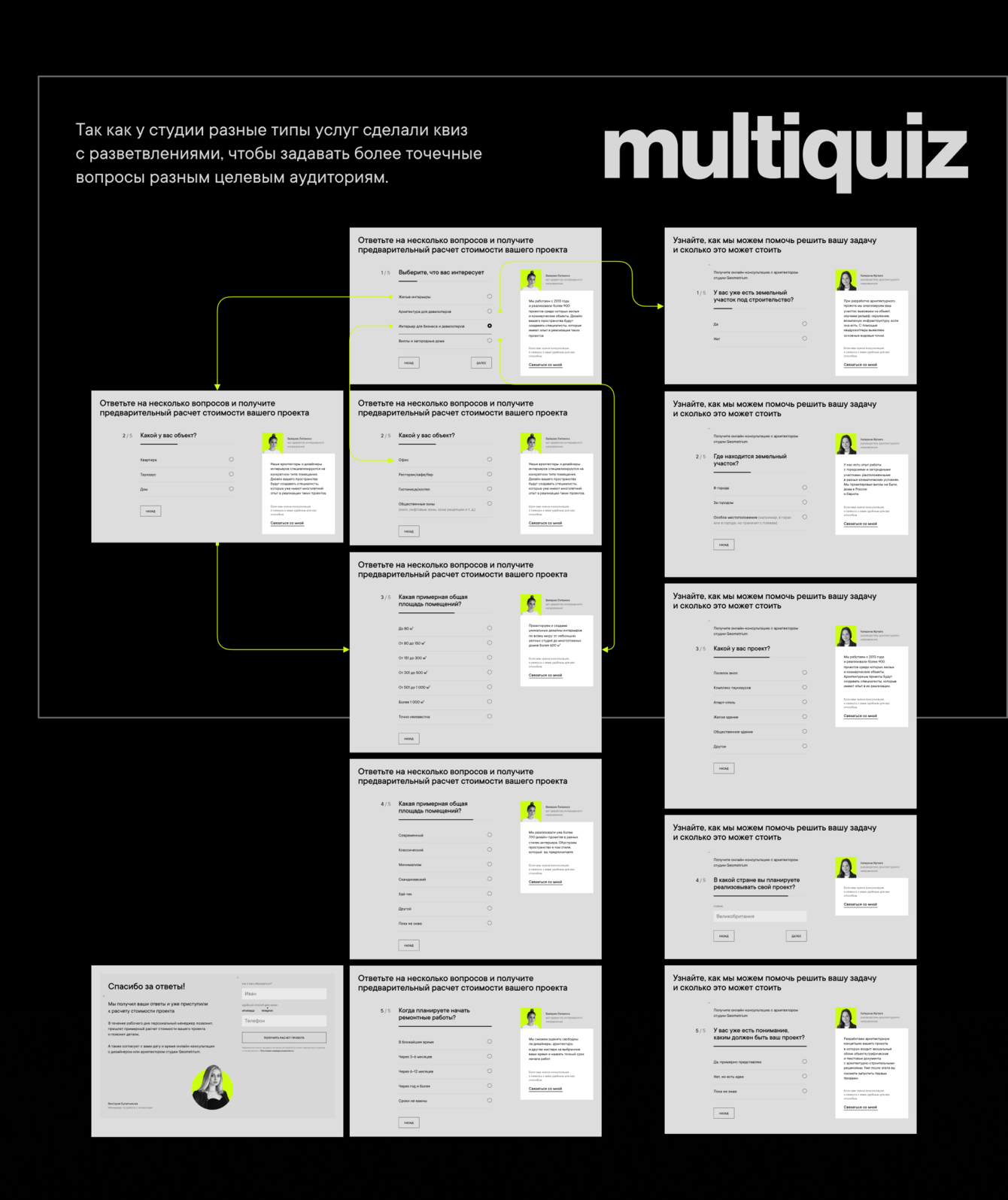 Исходя из брифа и общения с потенциальными клиентами студии, мы выявили 4 основных сегмента целевой аудитории. Затем составили аватары каждого сегмента: их потребности, боли, страхи, возражения и сомнения, что также легло в основу для разработки сайта.