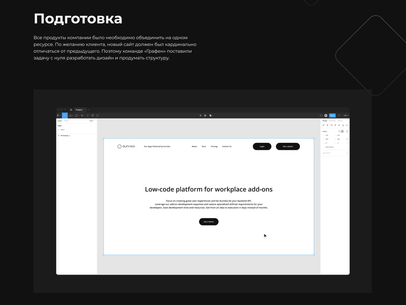 Все продукты компании было необходимо объединить на одном ресурсе. По желанию клиента, новый сайт должен был кардинально отличаться от предыдущего. Поэтому команде «Графен» поставили задачу с нуля разработать дизайн и продумать структуру.